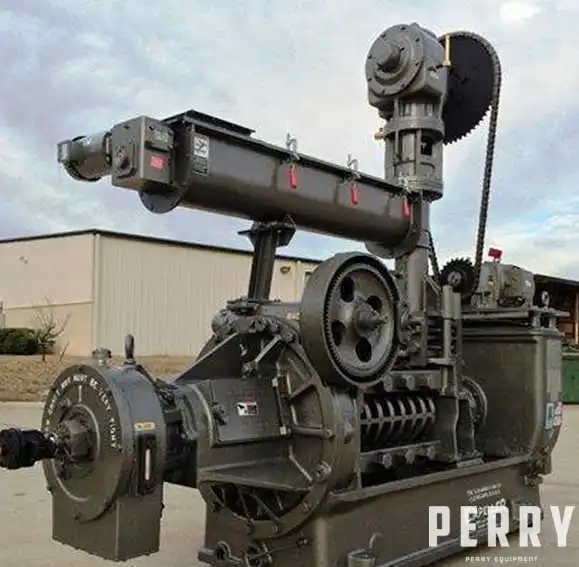 Použité Anderson Duo lisovací zařízení. 9"x 5 proměnná rychlost šnekového podavače s 2HP motorem a pohonem. 15HP svislý motor s ozubeným hlavovým kolem s řetězovým pohonem a ochranným krytem. Svislá výpustní hlava s segmentovým šnekem a praskajícími šrouby. Těžké horizontální hlavní převodové pouzdro s novým přesným hřebenovým kolem, integrovaný pinionem a šnekovým kolem & pinionem. 50 HP přímo napojený hlavní motor @ 1200 RPM. Ručně ovládané nastavení dusení. Extra těžké axiální ložisko pro axiální jednotku T-53. Nerezové stříkací kryty s inspekčními dveřmi. Zahrnuje nové: ložiska a těsnění; integrovaný chlazený hlavní šnekový hřídel; 33" dlouhé drenážní klec s diamantovými tyčemi, pásy nožů, tlačítky, distančními podložkami a špalíky; 3" speciální olejový dopravník s pohonem a 3/4HP motorem. Jednotka je odstříknuta, základově natřena a natřena. 3/60/460V. Nezahrnuje startovací a ovládací panel motoru.