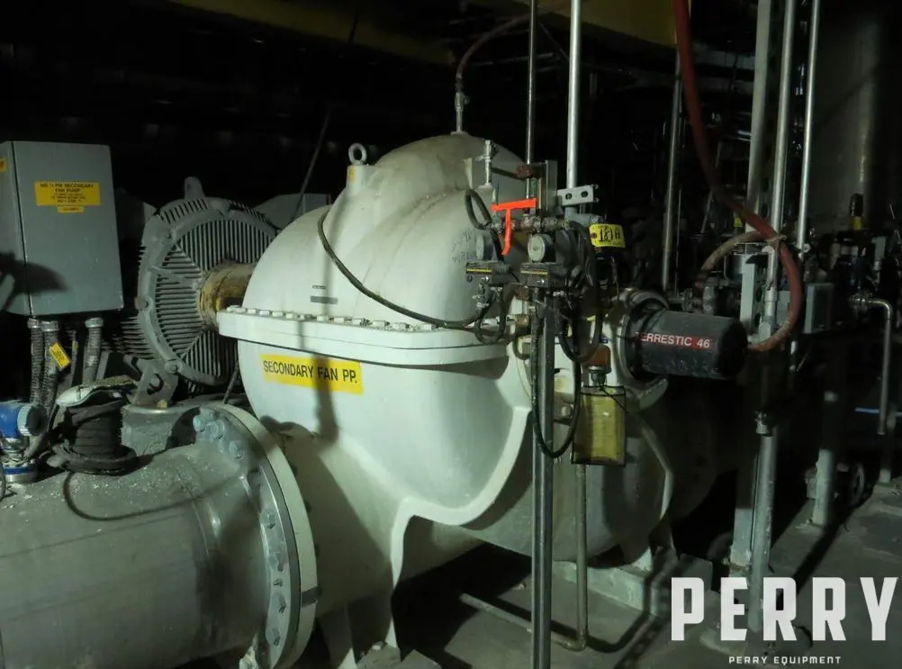 Used Ahlstrom model ZPP52-600 split case stainless steel fan pump. Capacity 24000 GPM or (91164 LPM). Was made in 2001. 800 RPM. Head height 127 ft (38 m). The pump was equipped with 1000 HP (735 KW) electrical motor. The motor is not included. More inforamtion is available on request.