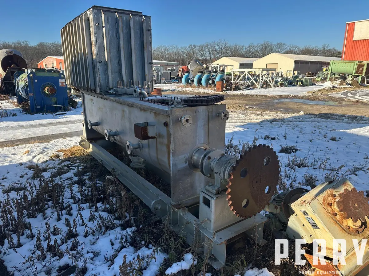 Unit equipped W/packing glands. Jacket has (3) 2" pipe, (2) 1" pipe FITT. Shell has (2) 1" FLG, (5) 2" FLG & (1) 4" FLG FITT. 11" S/S manually operated butterfly valve & 6" stainless steel manually operated ball discharge valve.
