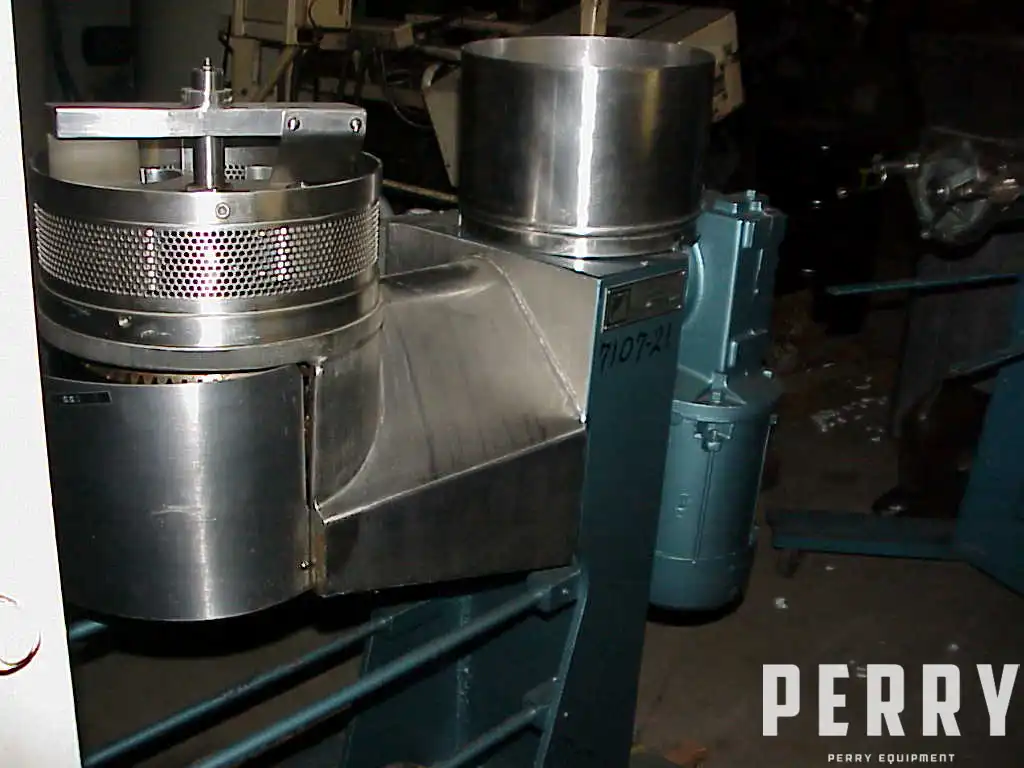 Used Vector Colton model 570 granulator. Stainless steel contacts. 3 HP, 1 phase, 60 cycle, 230/460 volts. On base. Stop/start push button controls. Serial #40813.