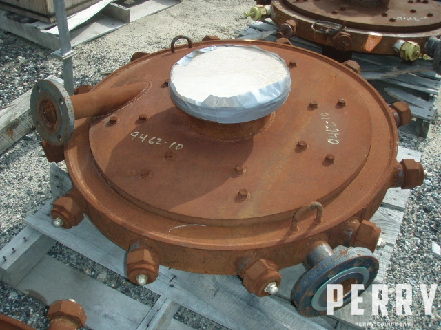 Side: (12) 2" male threaded steam inlet nozzles with caps, (1) 3" side grind air/gas/steam nozzle.