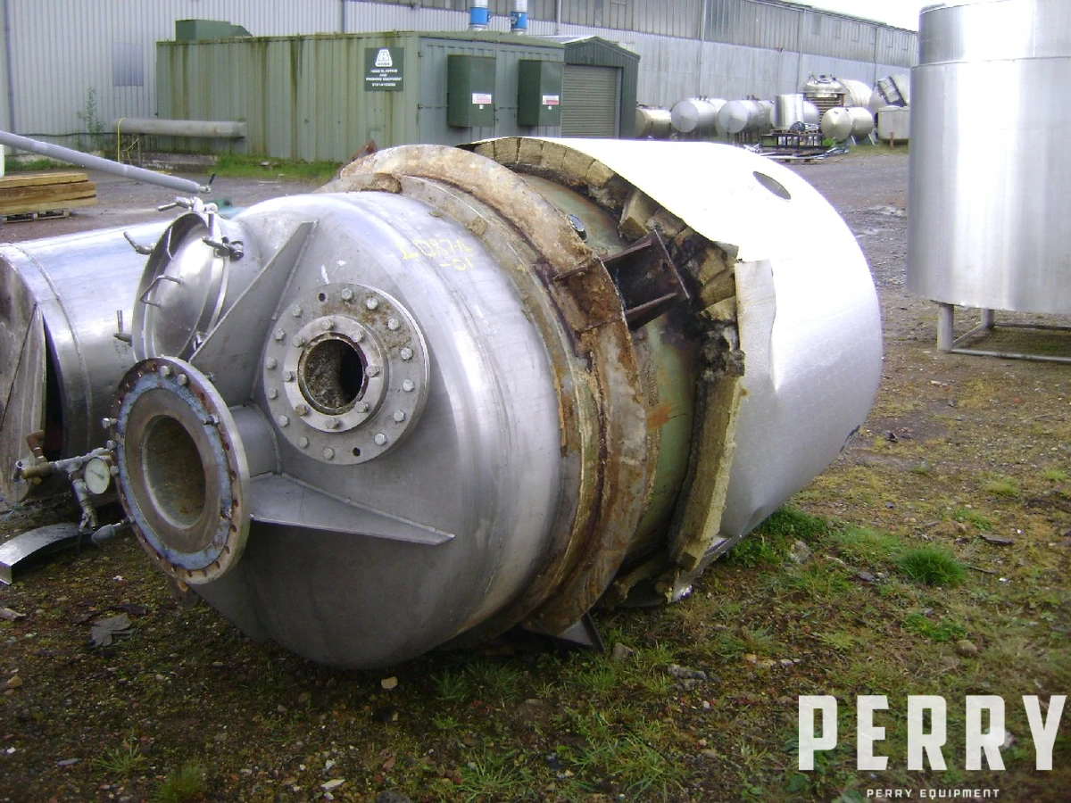 Used IVANS approximately 2,400 litre 304 stainless steel vertical reactor. Unit measures approximately 1300mm diameter X 1800mm straight side. Unit has welded dished top and bottom heads. Internal rated atmospheric pressure. Mild steel jacket rated 2 bar design pressure at 130°C. Unit includes 2-tier 3-blade pitched paddle stainless steel agitator driven by 15kW, 220/360 volt, 49/28.5 amp, 1460 rpm motor. Unit is mounted on (4) side support lugs. Material of construction 304 stainless steel.