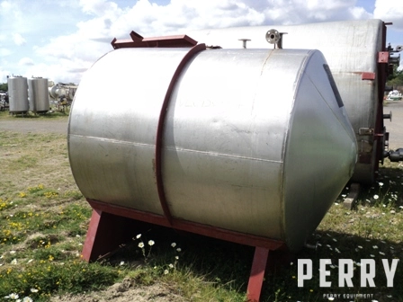 Used approximately 3,500 litre stainless steel horizontal storage vessel. Unit measures approximately 1820mm straight side X 1600mm diameter. Has welded cone ends. Unit is mounted on (2) mild steel saddles.