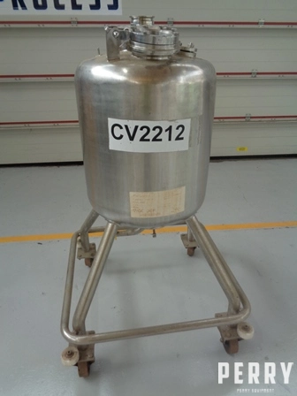 Used approximately 100 litre stainless steel mixing vessel. Unit has welded dished top and bottom heads. Unit measures approximately 500mm diameter x 450mm straight side. Unit has bottom entry stainless steel impellor type agitator but no drive. Mounted on stainless steel mobile frame.