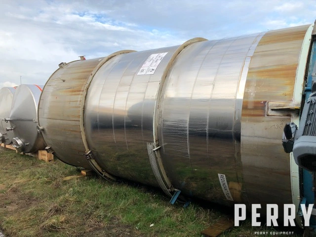 Used approximately 36,600 litre stainless steel vertical tank. Unit measures approximately 2800mm diameter x 5300mm straight side. Has welded dished top and flat bottom heads.