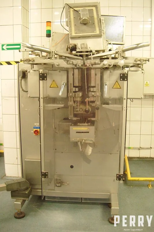 Used vertical sachet machine for packaging powders by Hassia (Germany) model FVP 18/30. Machine works with speed in range 40 cycles/min x 4 rows . Can operate on sachets with dimensions: