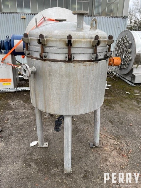 Used 10 sqmt hastelloy plate filter. Chamber measures approximately 900mm diameter x 700mm straight side with a capacity of 450 litres. External stainless steel jacket. No rating plate present. Mounted on (4) legs.