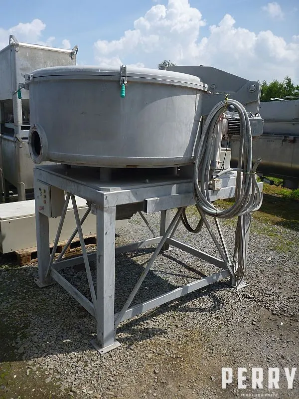 Used stainless steel granulating mixer with total volume of mixing chamber 1000 l. Internal dimensions: diameter 1470 mm x depth 580 mm. Mixer has four arms agitator working at the flat bottom of mixing chamber, driven from below through gearbox and electric motor 34/25 kW, 1470/730 rpm, 400 V, 50 hz. Working rotation of agitator: 125/62 rpm at 3840/2596 Nm. Mixer has also hi-intensive agitator (chopper) driven directly by 7.5/6 kW, 2900/1450 rpm, 400 V, 50 Hz. Side wall discharge outlet with diameter 200 mm equipped with pneumatically operated valve. Top cover is raised/lowered pneumatically and has feeding inlet/inspection manway with diameter 300 mm and lid. Machine is equipped with electric cabinet and local control panel. Mounted on stainless steel supporting frame. Shipping dimensions: L 210 cm x W 185 cm x H 220 cm.