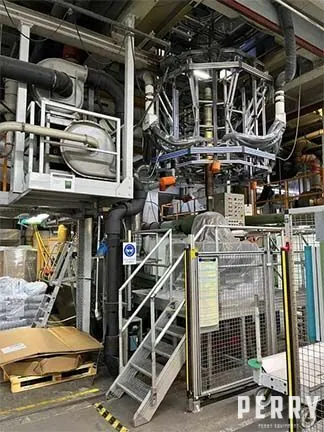 Used 1979 W&H blown film line. 6" extruder, 20" die, 82" nips, back-to-back single turret winders, two-sided treaters, and oscillating haul-off.