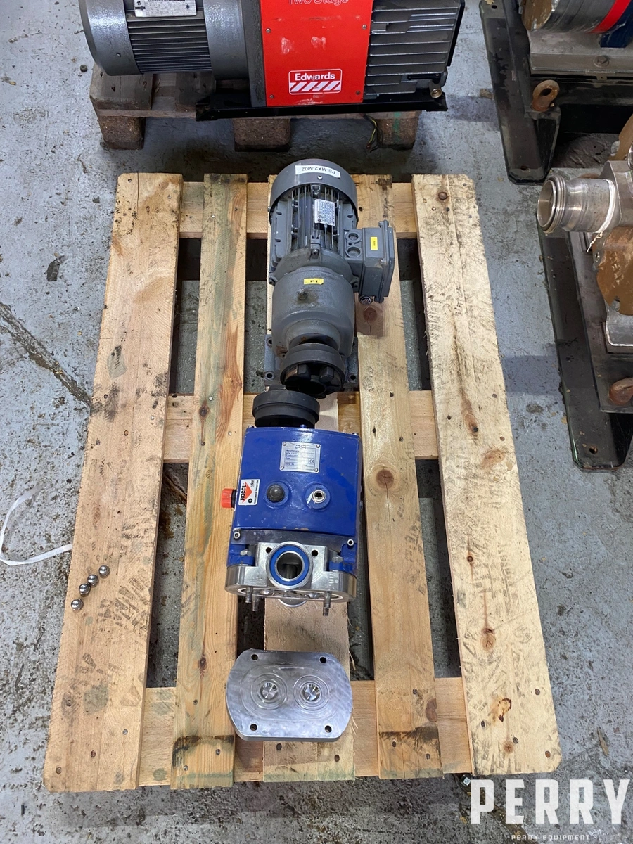 Used Alfa Laval SX2/013/U Lobe Pump displacing approximately 0.128 litre/rev. Unit has an inlet and outlet connection size of approximately 1.5inch.Uit has a differential pressure of approximatelty 7bar with a maxiumum speed of 1000rpm.