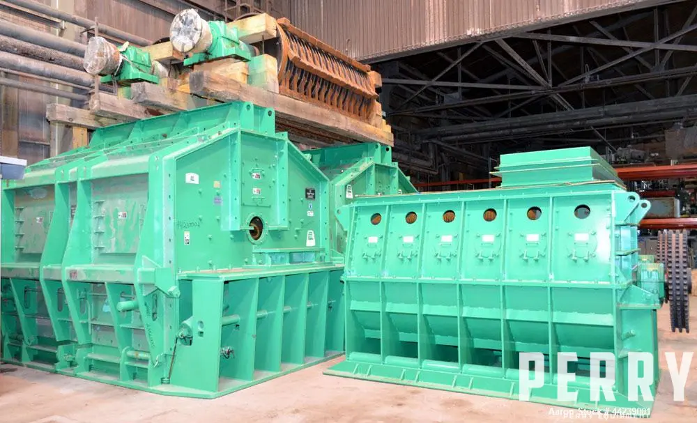 Unused, never installed, never assembled Pennsylvania Coal Crusher model SXCB-225 carbon steel reversible hammer mill. Rated approximately 600 tons per hour. Approximate 56" diameter X 120" wide rotor with hardfaced hammers. 110" wide X 16" long top feed opening with posimetric feeder, hydraulic side doors, and side access doors. Driven by ABB 2500 HP, 3 phase, 60 cycle, 4000 volt, 596 rpm motor. Includes miscellaneous parts and control panels.