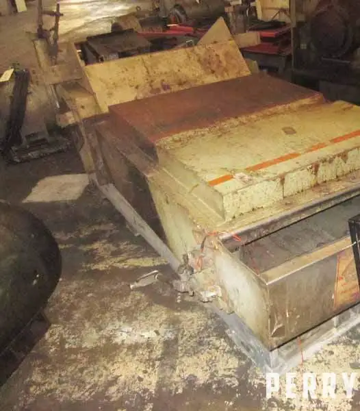 Used Cumberland pull roll hopper with 6" diameter x 37" wide Knurald and grooved all set position feed roll infeed with pneumatic pinch. Feed roll in feed trumpet, feed rolls are chain and sprocket driven by 7.5 hp 1750/1930 rpm continuous duty DC motor through Reliance 2.76/1 gearbox. See Model 37 Cumberland granulator at additional cost.
