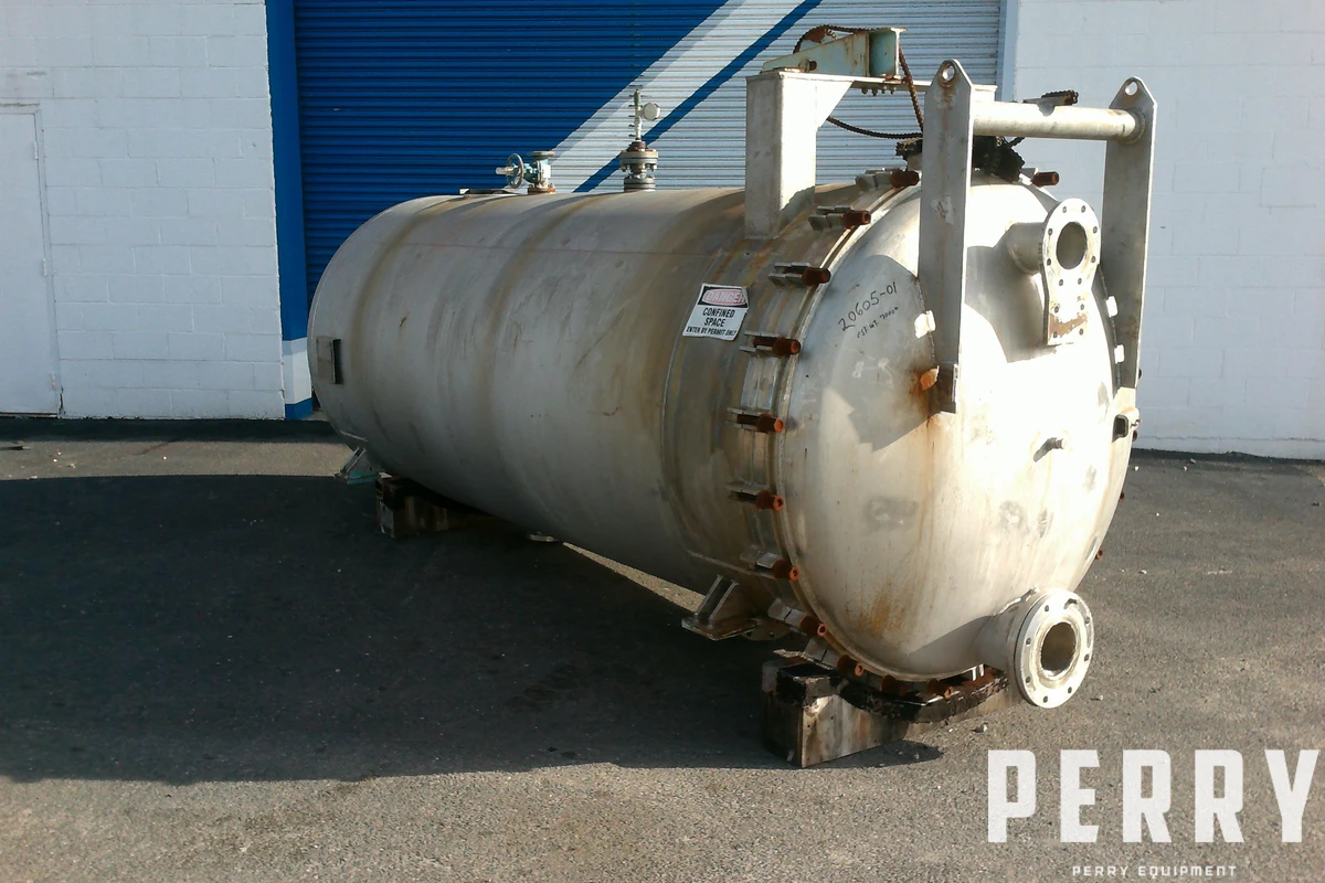 Used Upton 400 square foot stainless steel pressure leaf filter. Rated 70 psi internal. (39) 42" X 40" retractable leaves. 3" spacing. Horizontal tank with vertical leaves. 60" diameter shell. Serial 87-3162-A. National Board 553.