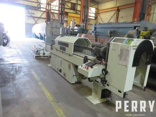Used 120" wide Elite Cameron Model CC300 core cutter for 3" cores. Serial #3M02500. Year 2002. With Allen Bradley Panel View 550 touch screen control panel.