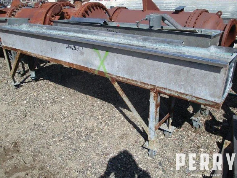 Used 15" wide x 10' long x 12" deep stainless steel water bath mounted on wheels. No pump included.