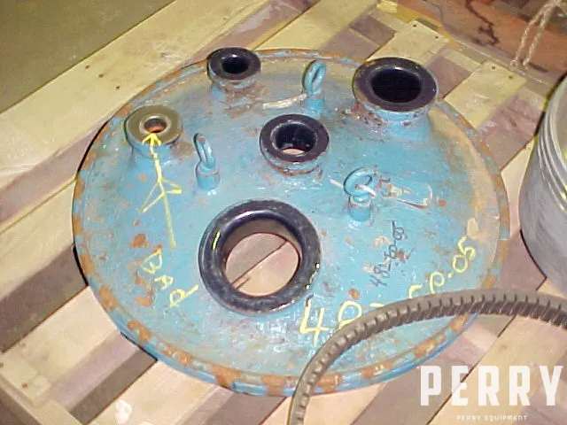 50 Gallon glass lined head, manufactured by Pfaudler, approximately 27" diameter, fittings: 2", 3", 4", 1.5", 1" with (2) lifting lugs.