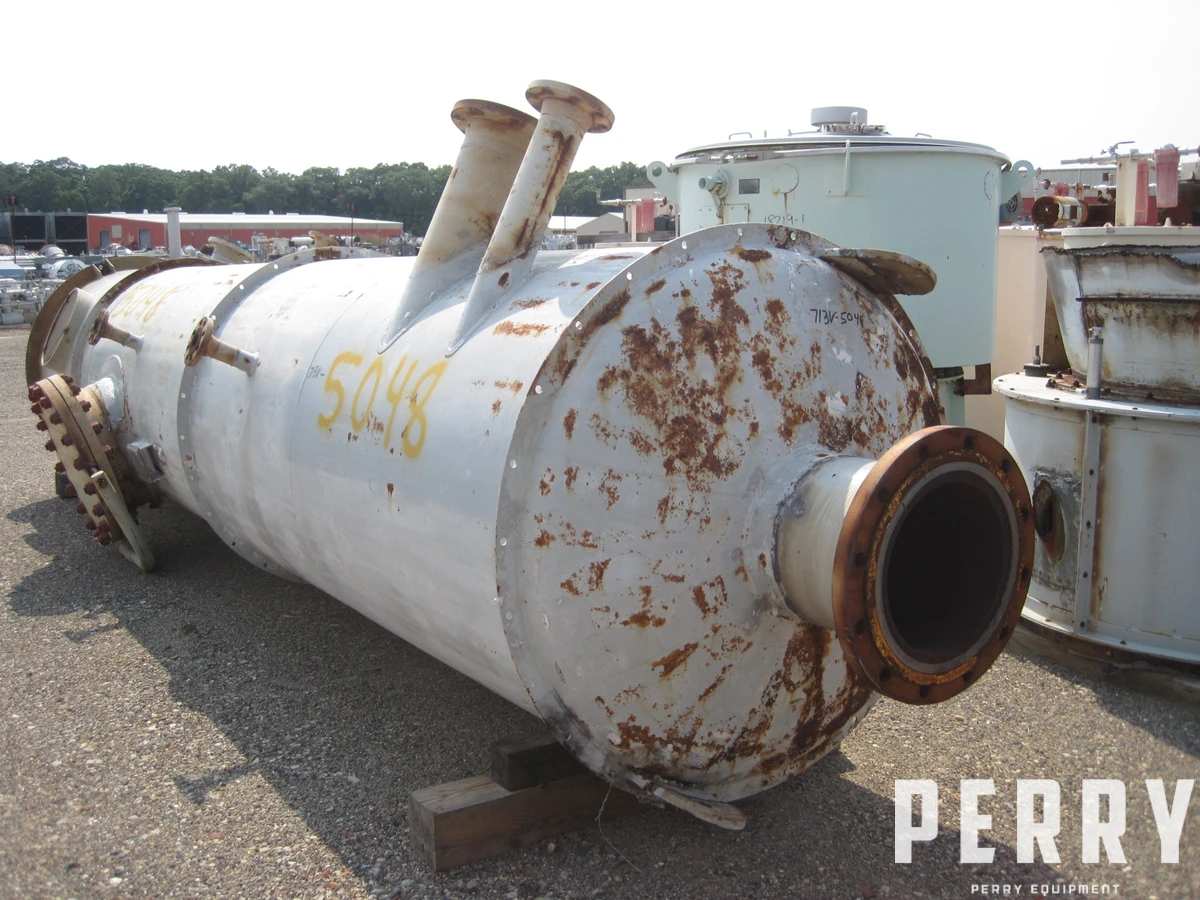 Used approximately 1,378 gallon vertical carbon steel tank. 4' diameter X 14'7" straight side. With dished heads. 21'5" overall height. 0.75" shell thickness. Rated 50 psi internal at 400°F. Skirt mounted. Manufactured by Best Manufacturing Co.