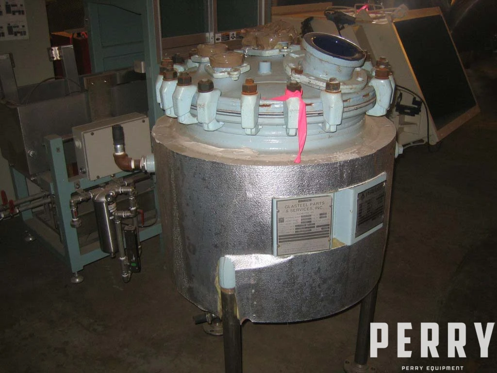 Reglassed Pfaudler P Series 20 gallon glass lined reactor body. 3315 glass. Rated 150 psi @ 650°F internal. Jacket rated 90 psi @ 350°F. 20" diameter X 14" straight side. All mounting brackets. (1) 4.5" handle hole nozzle, (1) 2.5" agitator nozzle, (1) 2" nozzle, (2) 2.5" nozzles. On legs.