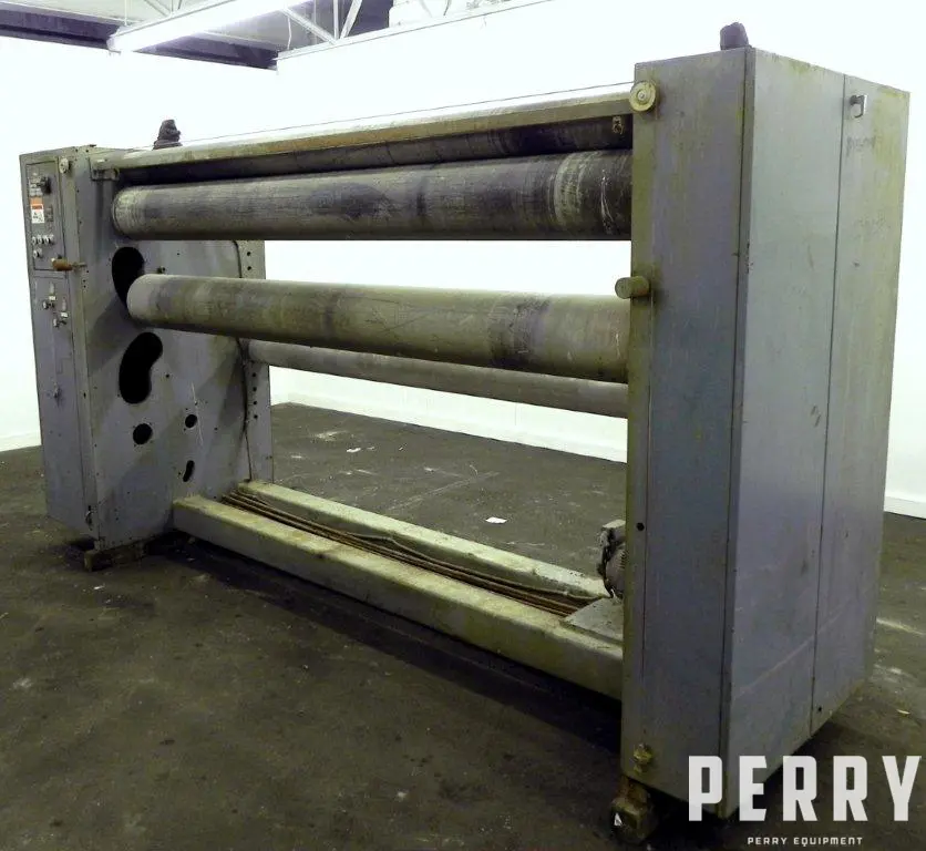 Used Battenfeld Gloucester pull roll assembly having (2) 108" face X 10" diameter rubber rolls. Rubber is driven by a 3 HP AC motor through a gear reducer. Includes inverter ABD operator controls. 480 volts, 3 phase, 60 cycle. Serial number 36831-29. Built 10/1995.