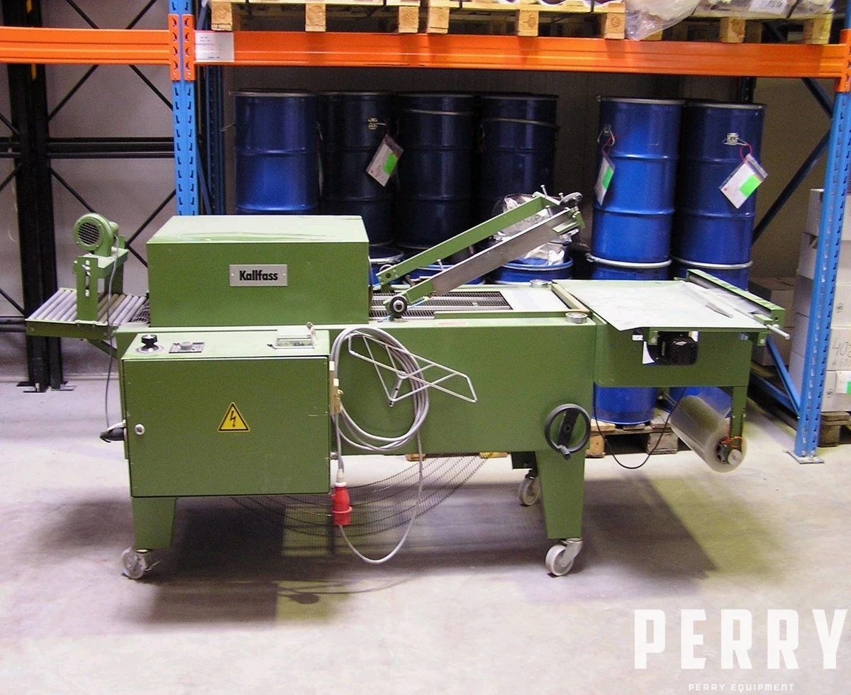 Used Kallfass Model KS MC 5040 bundling and overwrapping machine. Working area width 400mm X height 200mm. Driven by WEG KGG 223 0.18kW 3000rpm motor. Compressor motor type Klein ENG 3-6/S14 0.1kW 2650rpm.