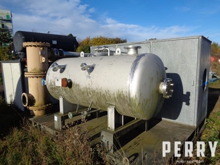 Used 2,600M3/hr stand alone cast iron/phosphor bronze single stage displacement liquid ring vacuum pump with receiver manufactured by Sihi. Pump & drive unit contained in a sound reduction cabinet, all mounted on a carbon steel base plate. Application: handling & exhausting of dry and humid gases; entrained liquid can be handled during normal duty. The pumps are applied in all Fields where a pressure of 120...900 MBAR must be created. Fields of application are for example chemistry and pharmacy for distilling and degassing, electric industry for impregnation and drying plastics industry for degassing etc. Sihi vacuum pump model / type: LPHA 80540 BN DAK 02 Y, displacement: 1,825 m3/hr (1074CFM) ultimate pressure: 120mbar (3.5"Hg): maximum compression over pressure: 1,5bar. Intake pressure: 500MBAR absolute. Max discharge pres: 1,05bar. Stages: single-stage displacement pump, temperature: maximum gas temp. Dry: 160°C. Maximum gas temp.saturated: 80°C, nominal speed: 750 rpm. Motor power: 68kW. Motor: EEXD IIB T3 / 68kW / 3PH / 50HZ / 500V / 105a / 740rpm / IP55 / class F / rise. Tank / receiver: 1,758 litre all stainless steel 316ti (1,4571) horizontal receiver MFD by Siemens & Hinsch MBH (Sihi) rated 0,5 / -1 bar. Vessel measures 1,0M diameter X 2,5M L including dished ends.