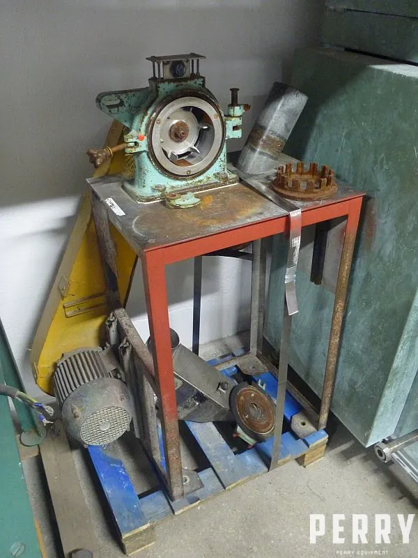 Used carbon steel universal mill by Forplex. Mill has non-corrosive rotor with external diameter 145 mm and carbon steel stator. There is also insert with screen, with internal diameter 145 mm and external diameter 190 mm. Rotor is belt driven by el. motor 3 kW, 2890 rpm, 220/380 V, 50 hz. Mill has stainless steel feeding inlet mounted on carbon steel doors of milling chamber. Central bottom discharge. Mill is mounted on carbon steel supporting frame.