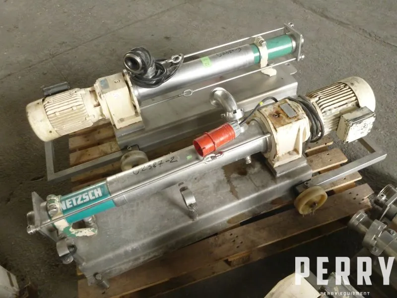 Used stainless steel contact parts progressing cavity pump by Netzsch type NEMO. Pump is driven by gearbox and el motor 1.5 kW, 1430 rpm, 230-400 V, 50 hz. Connections have diameter 50 mm. Mounted on stainless steel pedestal. Last time used in food industry.