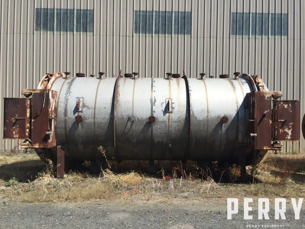 Used Northwest Copper Works sterilizer. 304 stainless steel. Rated 50 psig/full vacuum internal. Double door. 9' diameter X 26' long.