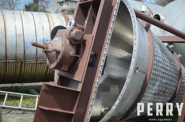 Used 70 cubic foot JH Day model MBX 700 Nauta vacuum dryer-mixer. Stainless steel construction. Less drive motor. Was used with a 40 HP main drive, has 2 HP drive for orbiting of screw. Internals have a polished finish, with stainless steel dimpled jacket on the shell. Jacket is designed for 125 psi @ 353°F. Internal is designed for full vacuum. Also has flange for mounting a side entry lump breaker/chopper (less chopper, and less motor). Last used on toothpaste. Good condition.