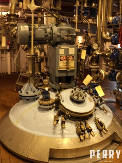 Used Pfaudler approximately 1,000 gallon glass lined reactor. Rated 100 psi/full vacuum internal @ 450°F. Jacket rated 90 psi @ 500°F. 20 HP Pfaudler 5RW agitator drive with mechanical seal. 460 volt XP motor. 3-blade retreat curve Cryolock agitator and beavertail baffle.