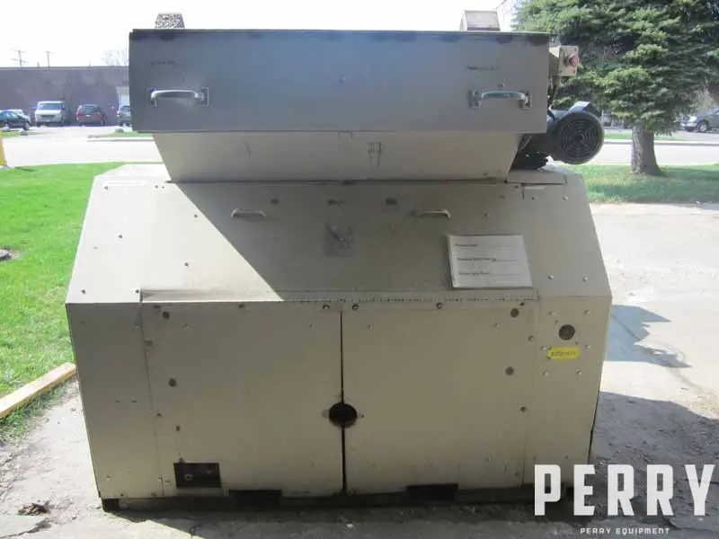 Used Ball & Jewell model LT-1248 Granulator with feed rolls. Has 12" X 48" feed throat opening with 3-knife open rotor and 2 bed knives. Driven by dual 10 HP motors, 230/460 volt, 1170 rpm. Has 7.5" X 47" feed rolls. Includes motor starter and granulator controls with interlocked 5 HP blower starter.