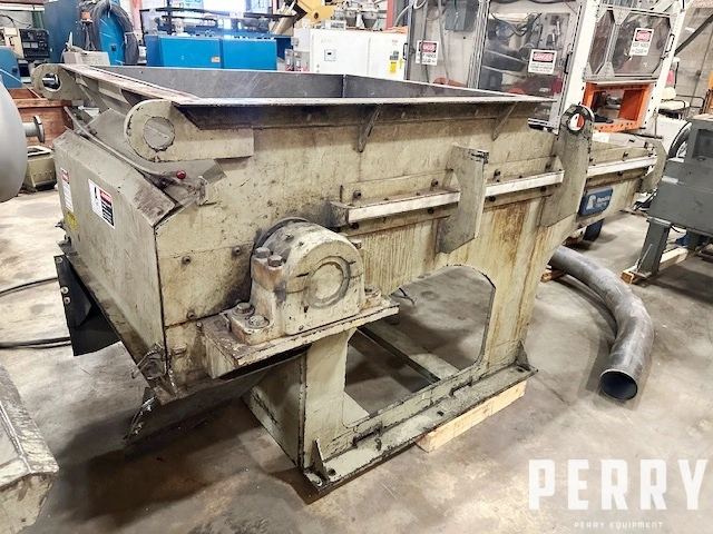 Used 52" wide Republic Machine single rotor shredder model RM52-100 New 5/21/2004, serial number 1102. Has 52" x 58" feed opening. Approximately 15" OD rotor with 60 knives, 3" OD discharge screen, 100HP motor, and hydraulic pump for dual cylinder ram assist. Includes outboard bearings, and operator panel.