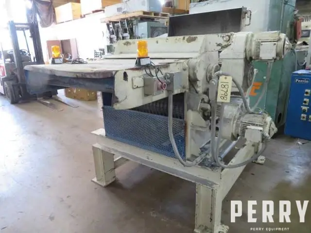 Used Retech Horizontal Shredder. Model VH34/75, serial #8810010, new 2006. Has 5" x 34" in-feed opening, 16" diameter 44 cutter rotor with a 390 RPM rotor speed. Rotor is belt driven by a 75 hp 460 volt 1185 rpm motor. Two infeed rollers are powered by approximately 1 Kw SEW Euro drive motors and gearboxes. 41.5" in-feed height. 2" holes screen installed. Gravity discharge. Includes stand-alone starter/control panel and a 30' long vibratory in-feed conveyor (no controls for conveyor).