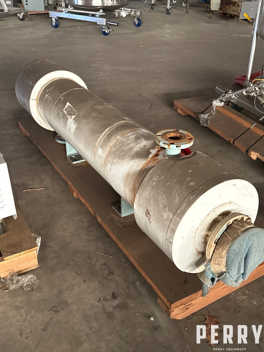 Used 25 sq. ft. tantalum shell and tube heat exchanger. Manufactured by Pfaudler. (26) .75"od tantalum tubes MAWP 100 psi/full vacuum @ 350°F. Carbon steel shell rated MAWP 100 psi/full vacuum @ 350°F. (2) saddle-mounted. National Board #51728. Serial #J068493. Built 2006.