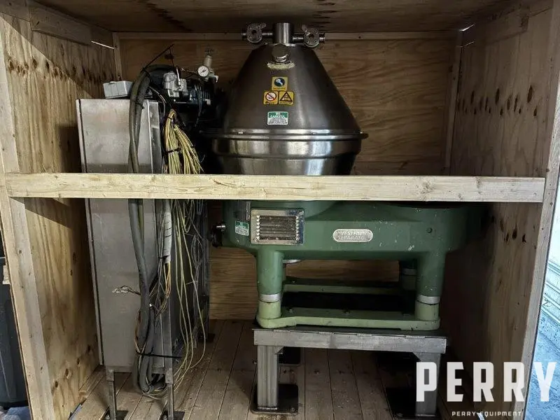 Used stainless steel disc separator. Manufactured by Westfalia Separator AG. Type SC 35-06-177. 7230 RPM. Heavy Liquid 1.1 g/cc. Solids 1.4 g/cc. Made in Germany.