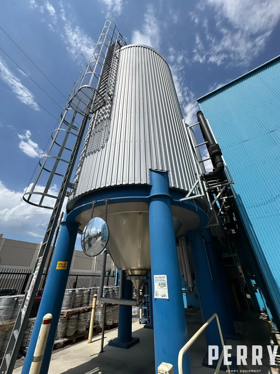 Used 27,000 gallon (874 BBL) 304 stainless steel jacketed pressure vessel. Manufactured by Ziemann Holvrieka. Vessel Rated 29psi @86F, jacket rated 43psi @86F. 13' 7" dia x 42' tall. Dished head, cone bottom.Previously used in brewery as fermenter, cooled with Glycol @24F. National board #534. Serial #9618. Built 2015.