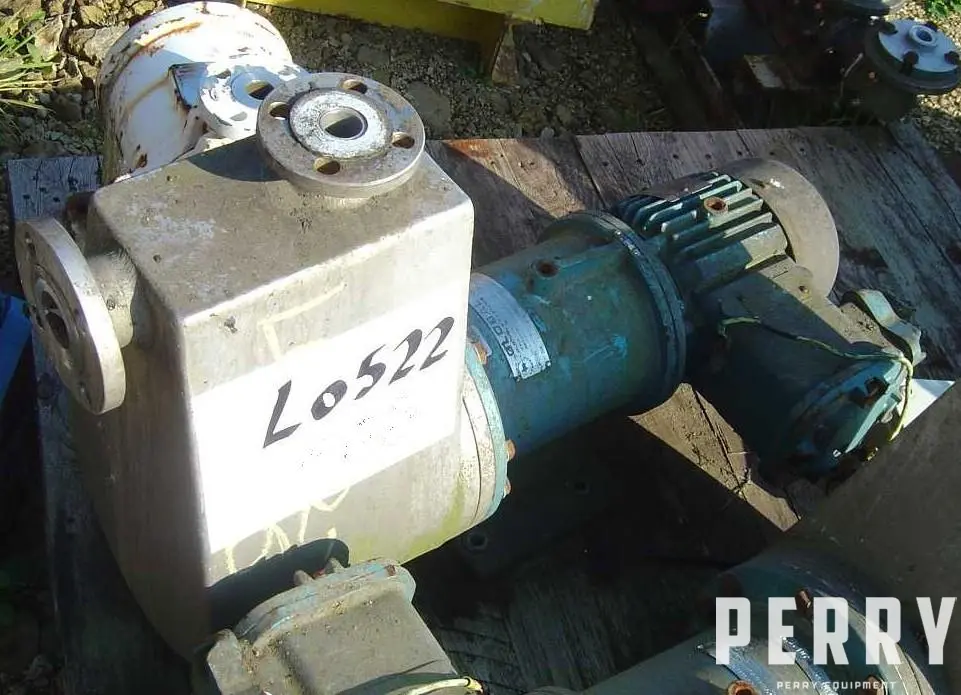 Bomba autocebante de acero inoxidable modelo Global usado SC160M.H/ONO153558410. Cuenta con entrada de 1" (25.4 mm) y salida de 1.5" (38.1 mm). Tiene una tasa de flujo de 0.3 metros cúbicos a 1750 rpm. Soporta una presión de prueba de 10 bar y es accionada por un motor de 1.1 kW, 1420 rpm, 3/50, 415 voltios.