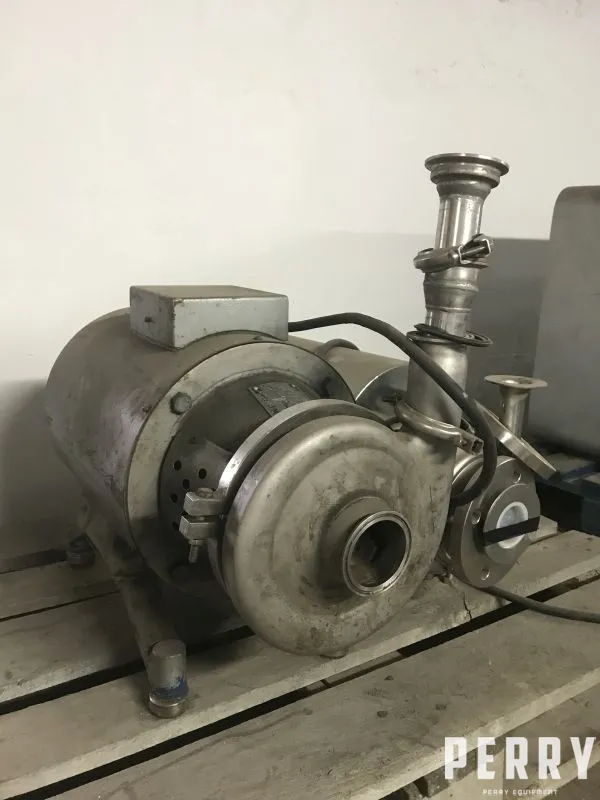 Pompe centrifuge à pièces de contact en acier inoxydable d'occasion, fabriquée par Polish. Type S19P3. La pompe a un diamètre d'entrée de 65 mm et un diamètre de sortie de 50 mm. Débit de travail jusqu'à 32 000 l/h. Hauteur de refoulement jusqu'à 96 m. La pompe possède un rotor ouvert de 160 mm de diamètre, entraîné directement par un moteur électrique de 5,5 kW, 2900 tr/min, 380V, 50 Hz. Montée sur quatre pieds.