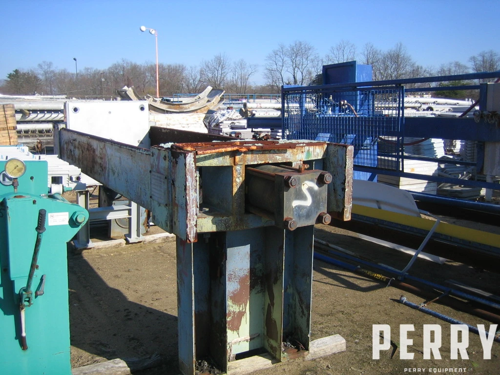Używana prasa filtracyjna Hoesch model 800-2273-D1-576 PP/D-20-D. (22) 30" x 30" membranowe płyty polipropylenowe. Ciśnienie robocze 225 psi @ 100°. Pojemność ciasta filtracyjnego 13 stóp sześciennych. Czteropunktowe, zasilanie centralne. Wyposażona w zamknięcie z hydraulicznym wspomaganiem. Numer seryjny #0704.