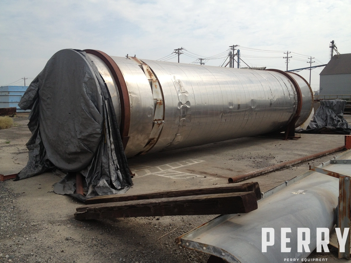 Używana suszarka FMC Link Belt Roto-Louvre #502-20 R-L. Średnica 8 stóp x długość 30 stóp. Wnętrze ze stali węglowej, zewnętrze ze stali nierdzewnej. Napęd 10 KM z prędkością wyjściową 30 RPM.