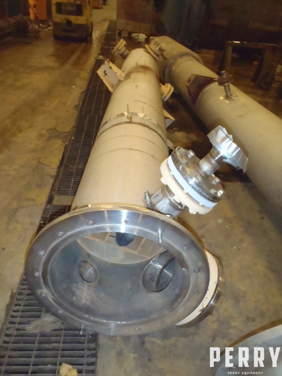 Coloană împachetată folosită 18" X 14'. Proiectată pentru pat împachetat de 8' (polipropilenă de 1"). Carcasă din oțel inoxidabil 304L. +15" WC până la -15" WC. Presiune nominală 55 psi la 392°F. Fabricată de Bay Tank and Fabricating Company.