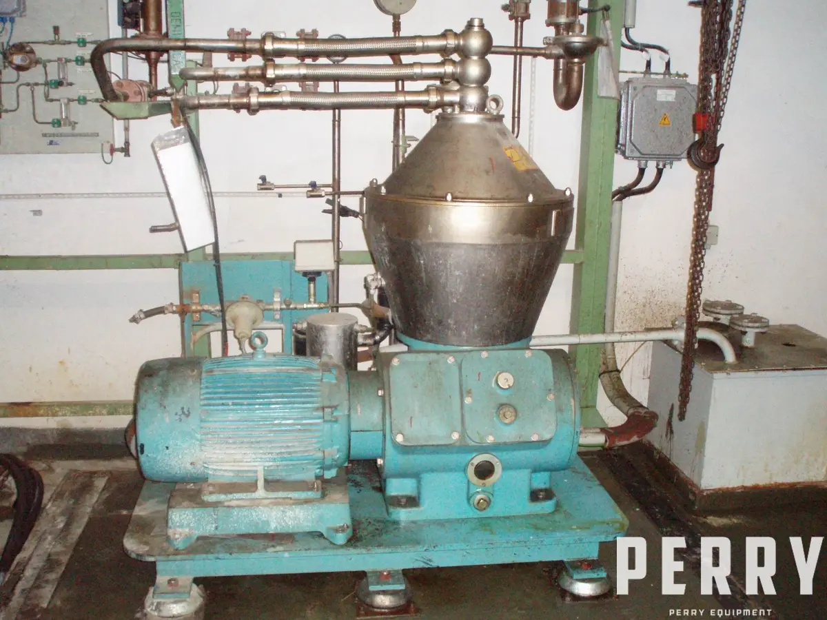 Separator din oțel inoxidabil Alfa Laval CHB 209T-15CEFP-50, folosit puțin. Motor antiexploziv Brook Crompton 15,0 kW/50Hz. Sistem de gaz inert. Toate comenzile incluse.