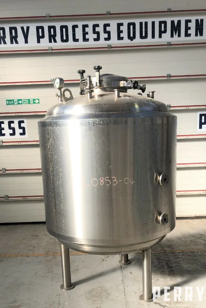 Recipient vertical de inox Packo folosit, capacitate aproximativ 1.500 litri, inox. Diametru aproximativ 1200 mm x înălțime laterală dreaptă 1100 mm. Presiune proiectată internă la vid complet/2 bar la 100 °C. Haină exterioară din inox, capacitate 30 litri, presiune proiectată 2 bar la 120 °C. Capace sudate bombate superioare și inferioare. Montat pe (3) picioare.